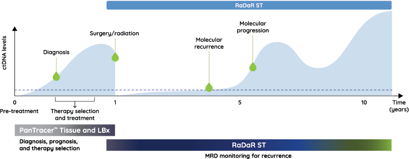 ![]() | RaDaR ST detects ctDNA and evidence of molecular recurrence, enabling earlier intervention and personalized treatment decisions. |
